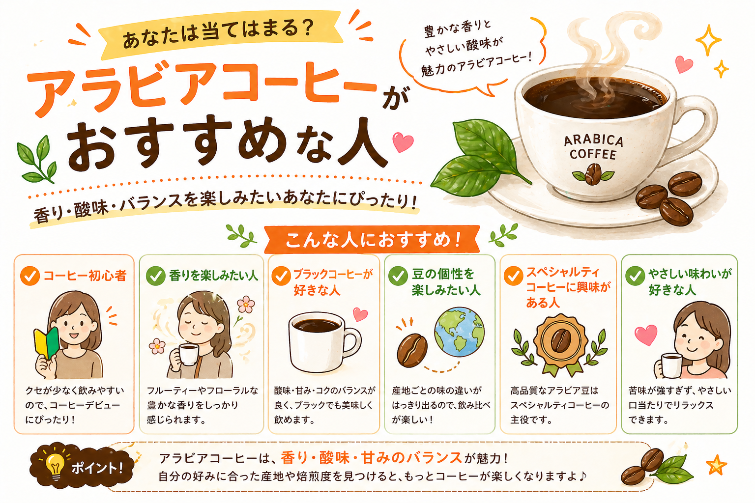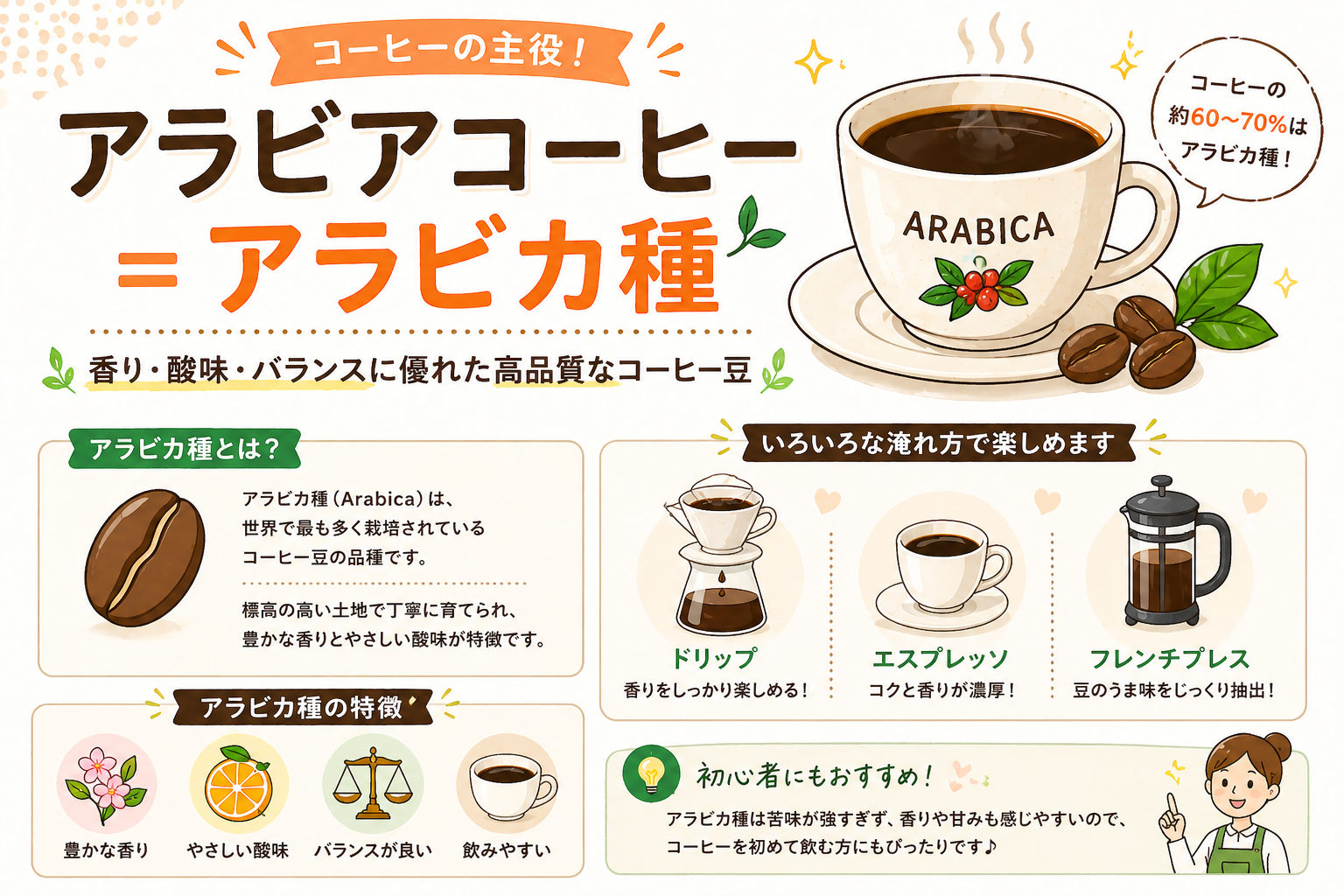 もちろん飲みすぎには注意が必要ですが、味わいとしてはロブスタ種よりもやさしい印象になりやすいです。
